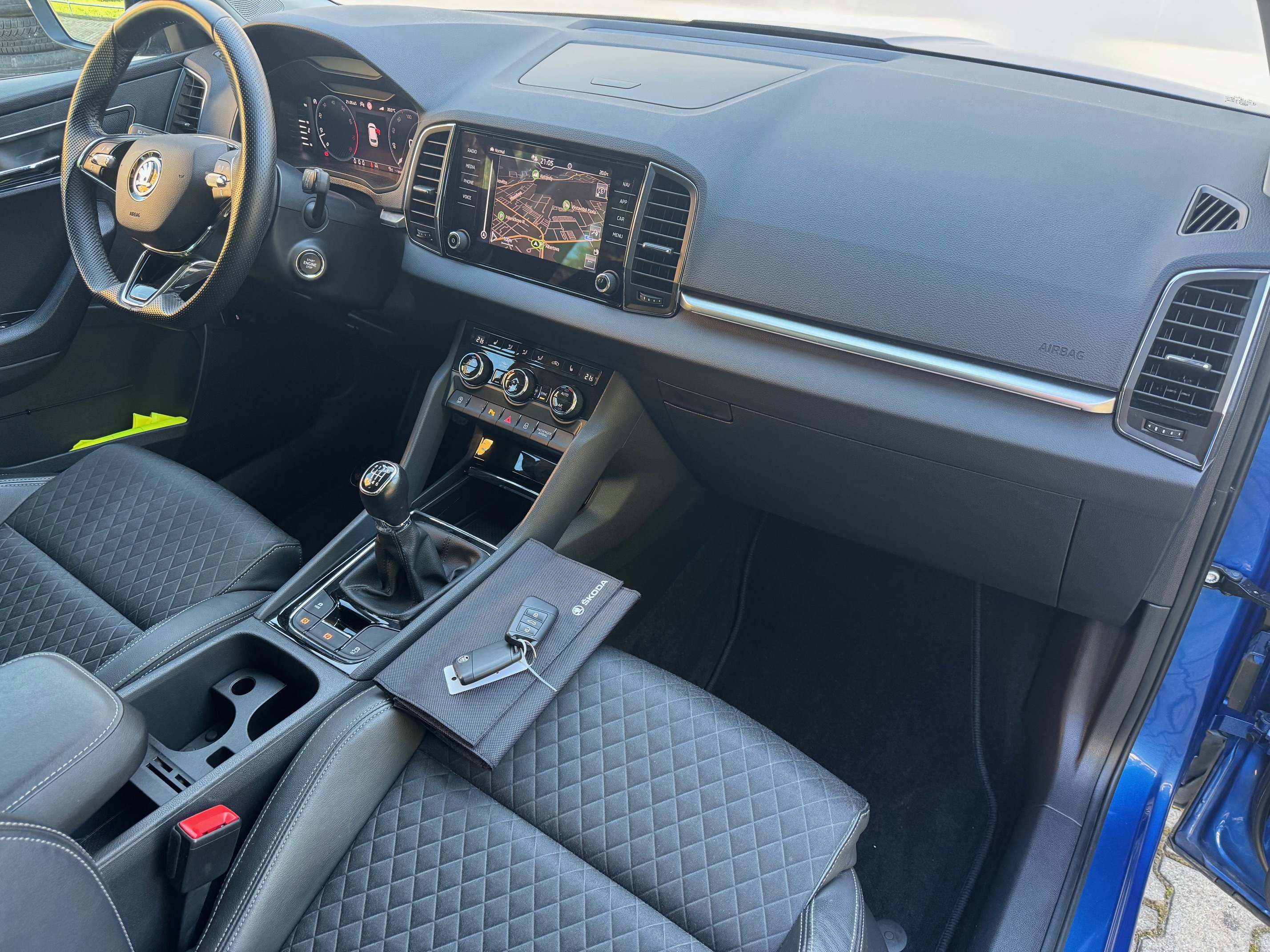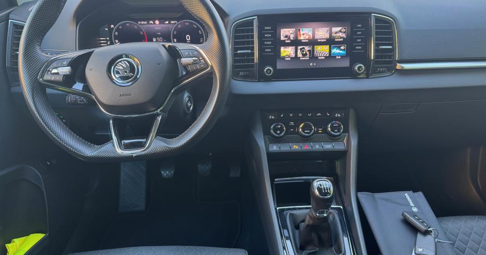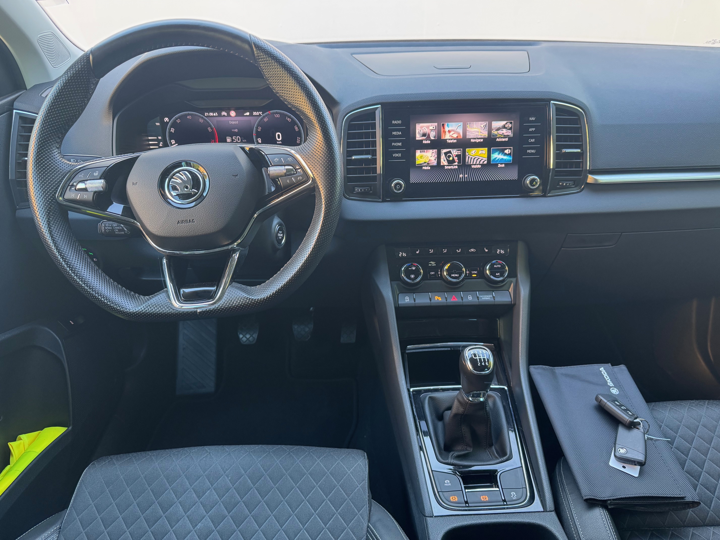centrální zamykání KESSY, ukazatel vnější teploty, klimatizace automatická dvouzónová, bezdrátový Smartlink – zrcadlení mobilního telefonu, omezovač rychlosti, nouzové volání, Škoda Connect, hlasové ovládání,